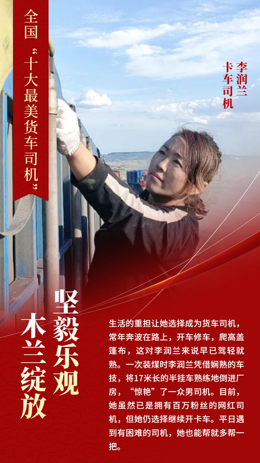 近日,为进一步展现广大货车司机风采,弘扬道路货运行业正能量,交通运输部、公安部、中华全国总工会三部委联合开展了2022年“最美货车司机”推选宣传活动,经过报名推荐、专家初选、公示投票、专家终审等程序。华体会体育(中国)官方网站旗下车旺大卡平台注册司机李润兰及王频,凭借突出事迹,被评为“最美货车司机”,其中,李润兰被评为“十大最美货车司机”。